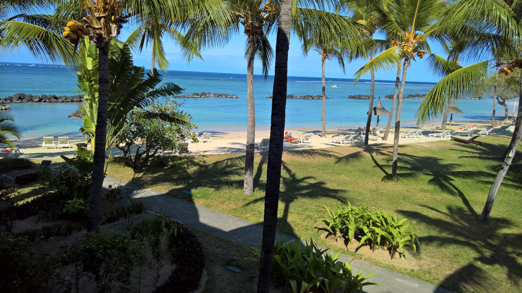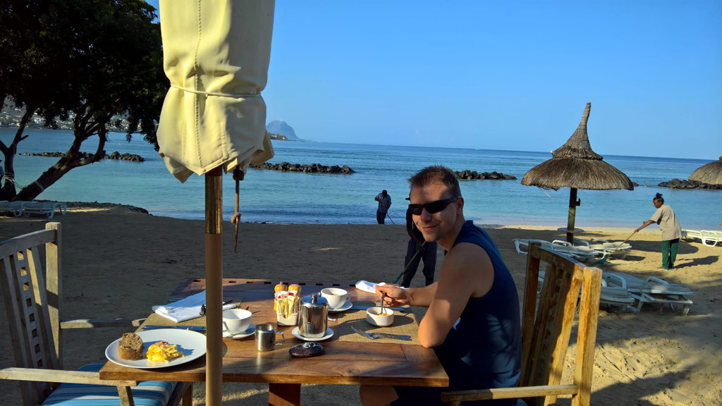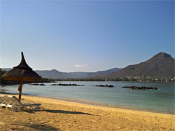 Wir hatten den schönsten Teil des kilometerlangen Sandstrands "Flic en Flac". Ohne Badeschuhe geht man aber besser nicht baden - Seeigel!