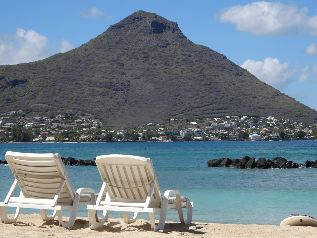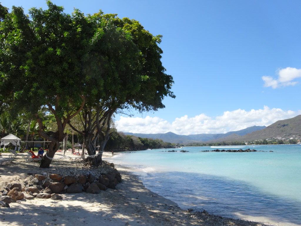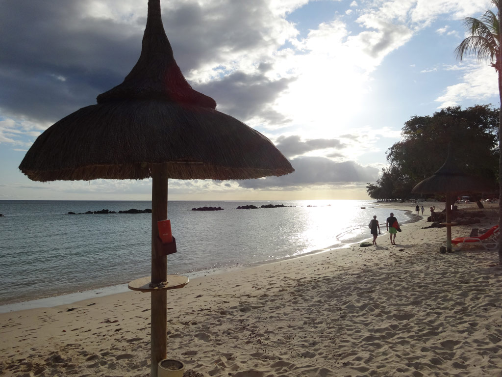 Wir hatten den schönsten Teil des kilometerlangen Sandstrands "Flic en Flac". Ohne Badeschuhe geht man aber besser nicht baden - Seeigel!